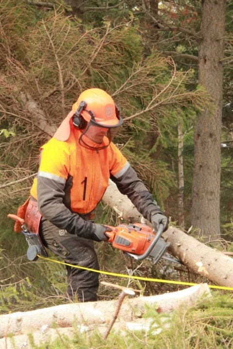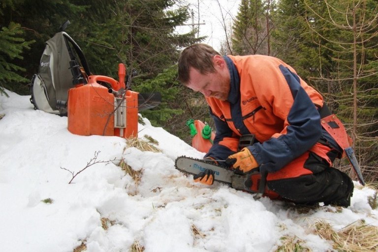 Benjamín Örn Davíðsson kvistar upp rauðgreniboli