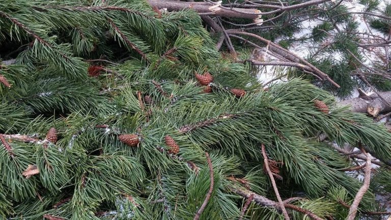 Upplagt er að nýta tækifærið þegar skógur er grisjaður og tína köngla af greinunum sem liggja eftir í skóginum. Hér sést ofan í könglasekk eftir frætínslu í Daníelslundi í Borgarfirði. Mynd: Hrafn Óskarsson.