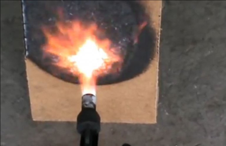 Vísað er á síðunni á rússneskt myndband þar sem sýndir eru eiginleikar timbureinangrunar miðað við steinull. Í miðju er trétrefjaplata sem samsvarar Hunton Silencio® og til hægri bútur af einangrunarefninu Hunton Trefiberisolasjon™. Til vinstri er gler- eða steinull sem bráðnar við nógu mikinn hita öfugt við timbureinangrunina sem bráðnar ekki heldur kolast hægt og rólega.