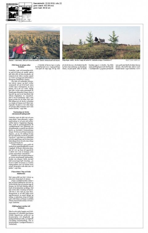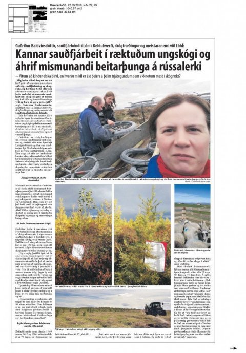 Guðríður Baldvinsdóttir, sauðfjárbóndi, skógfræðingur og meistaranemi við LbhÍ, segist lengi hafa beðið eftir því að einhver réðist í það verkefni að rannsaka sauðfjár­beit í skógi. Að lokum hafi hún gefist upp á að bíða og ákveðið að gera þetta sjálf. Hún greinir frá verkefninu í viðtali við Bænda­blað­ið í dag. Frumniðurstöður hennar eru að sauðfé sækist ekki eftir því að bíta lerki. Nýting á ræktuðum skógi til beitar geti orðið til þess að hægt sé að hlífa öðrum stærri landsvæðum við beit