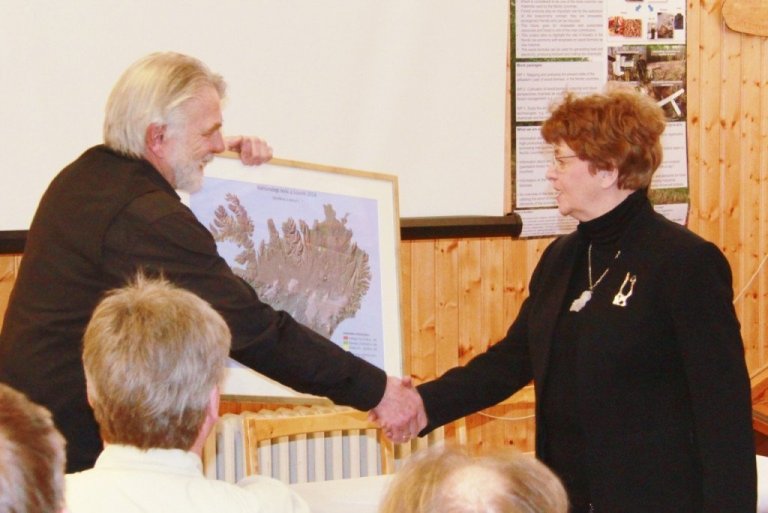 Jón Loftsson skógræktarstjóri færði Sigrúnu Magnúsdóttur umhverfisráðherra prentað kort af Íslandi þar sem birkiskóglendið hefur verið merkt inn með þeirri ósk að kortið fengi að hanga uppi í ráðuneytinu. Sigrún ávarpaði fundinn og sagðist fagna gjöfinni mjög því þegar hún hefði tekið við embætti hefði henni strax þótt vanta myndir á veggi ráðuneytisins. Sagðist hún þegar hafa sérstakan stað í huga fyrir kortið þar sem allir myndu sjá það sem í ráðuneytið kæmu. Sigrún lýsti mikilli gleði sinni með þær niðurstöður sem henni voru kynntar og komst svo að orði að þetta hefði verið mögnuð stund. Sjálf sagðist hún hafa átt margar góðar stundir við að pota niður birki í skógarreit norður í Blöndudal og vonaðist til að sá birkiskógur kæmist inn á næsta kort af íslenskum birkiskógum en sem kunnugt er sýnir birkikortlagningin eingöngu náttúrlegt birkiskóglendi, ekki ræktað.
