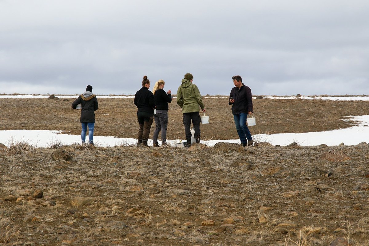 Starfsfólk Skógræktarinnar og Landgræðslunnar að störfum við samvinnuverkefni í skógrækt og landgræðslu á Hólasandi. Ljósmynd: Pétur Halldórsson
