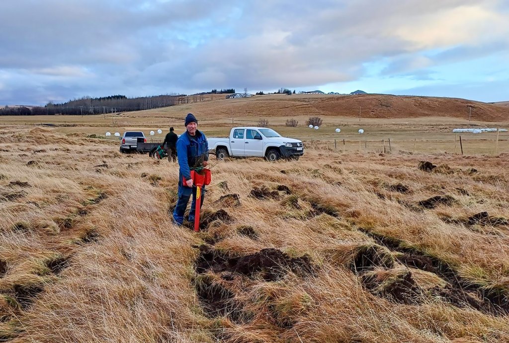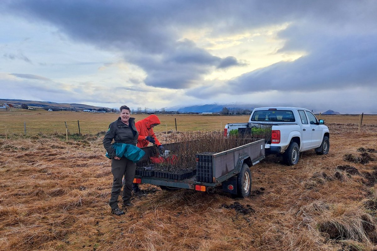 Alls voru gróðursettar tæplega 3.000 plöntur af alaskaösp og stafafuru þennan milda fimmtudag í nóvember. Helsta vandamálið við gróðursetningar á þessum árstíma er hversu stuttir dagarnir eru, segir Trausti. Hann bætir við að samkvæmt kolefnisspá fyrir svæðið megi gera ráð fyrir því að árleg meðalbinding í reitnum verði um 20,6 tonn af koltvísýringi sem er dágott. Aftur verður gróðursett á næsta ári og þá er gert ráð fyrir að sett verði niður um 6.000 tré.