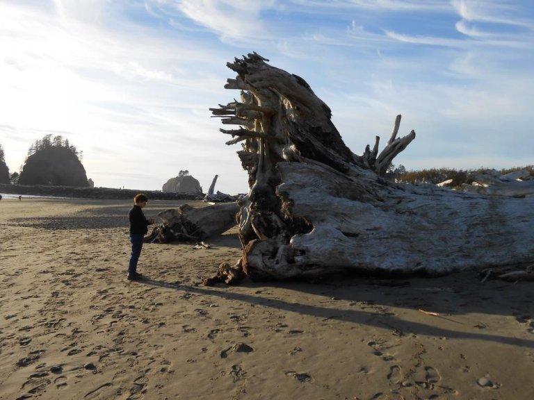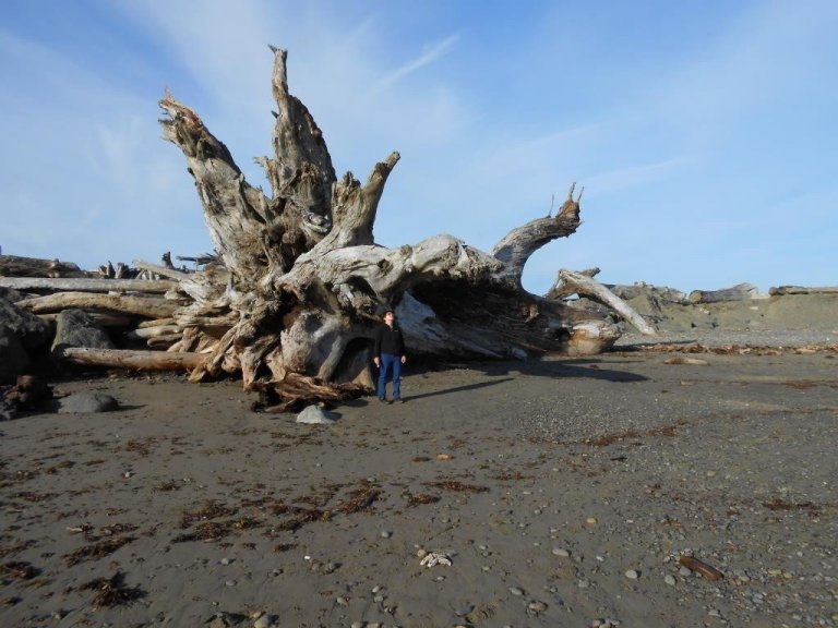 Sherry Curl skógfræðingur við risastóra sjórekna trjárót á vesturströnd Norður-AmeríkuVíða í íslenskum fjörum má finna rekavið sem að mestu er ættaður úr skógum Síberíu. Sumir bolirnir eru býsna stórir en sjaldgæft er þó að finna rekaviðarbjálka sverari en um 50 cm í þvermál. Það var því ævintýri að koma á strönd á Ólympíuskaga í Washington-ríki í Bandaríkjunum og upplifa REKAVIÐ.