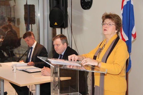 Gunnar Bragi Sveinsson utanríkisráðherra, Sigmundur Davíð Gunnlaugsson forsætisráðherra og Sigrún Magnúsdóttir, umhverfis- og auðlindaráðherra.