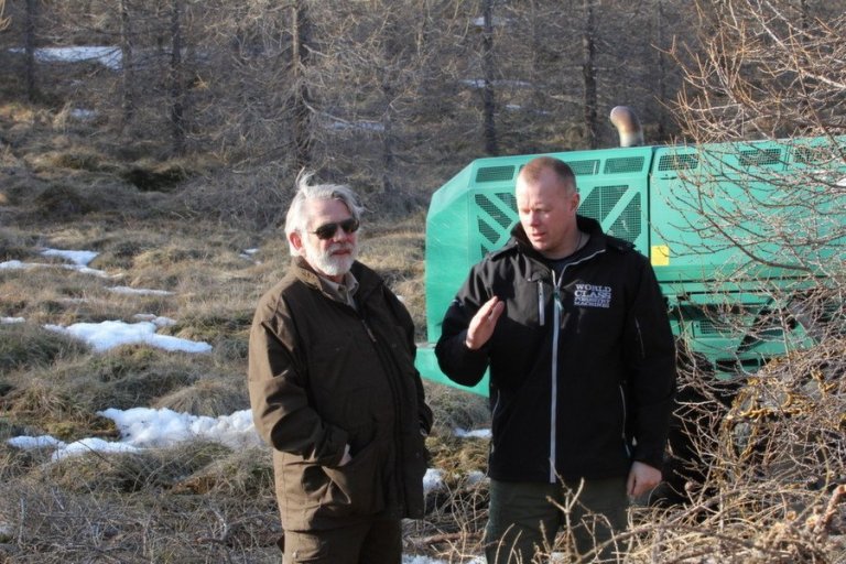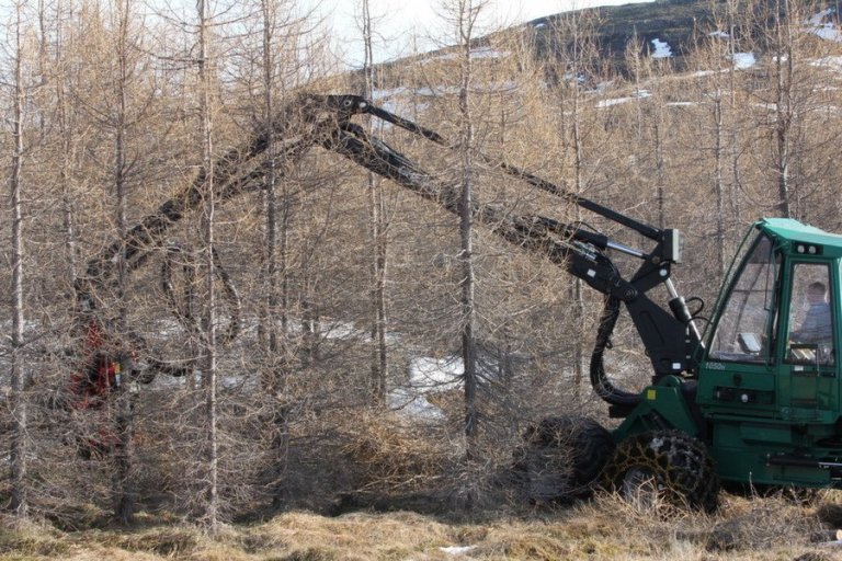 Kristján Már Magnússon skógverktaki hefur náð undraverðum tökum á nýju skógarhöggsvélinni sem hann keypti nýlega frá Svíþjóð. Hann fellir um 60 tré á klukkutíma með vélinni sem er um tífalt það sem einn skógarhöggsmaður með keðjusög afkastar. Þessi afköst aukast enn með meiri æfingu.
