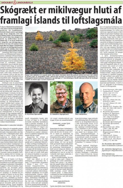 Í síðasta tölublaði Bændablaðsins velti Anna Guðrún Þórhallsdóttir, prófessor við Landbúnaðarháskóla Íslands, þeirri spurningu upp hvort skógrækt væri rétt framlag Íslands til loftslagsmála. Þar snertir hún ýmsa áhugaverða þætti og undirstrikar hversu mikilvægt sé að horfa heildstætt á skógrækt sem loftslagsaðgerð. Þetta er hverju orði sannara enda hafa allar breytingar á landnotkun í för með sér loftslagsáhrif og afar mikilvægt að einblína ekki á einn þátt heldur kanna heildaráhrifin.