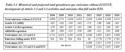 Á töflunni sést hvernig hlutur skógarbindingar (ARD = Afforestation, reforestation & deforestation) fer vaxandi á Íslandi en hlutur landgræðslu (revegetation) verður smám saman hlutfallslega minni. Þróunin er með öðrum orðum sú að mikilvægi kolefnisbindingar í skógi eykst jafnt og þétt í kolefnisbókhaldinu en mikilvægi landgræðslu hægar samkvæmt spánni. Árið 2008 var hlutur landgræðslu mun meiri en skógræktar í þessu bókhaldi. Eins og sakir standa nú er binding í skógi litlu minni en binding með landgræðslu og árið 2030 er því spáð að áhrif skógræktar verði orðin talsvert meiri en landgræðslu. ETS er skammstöfun fyrir Emissions Trading System, viðskiptakerfi Evrópusambandsins með losunarheimildir.