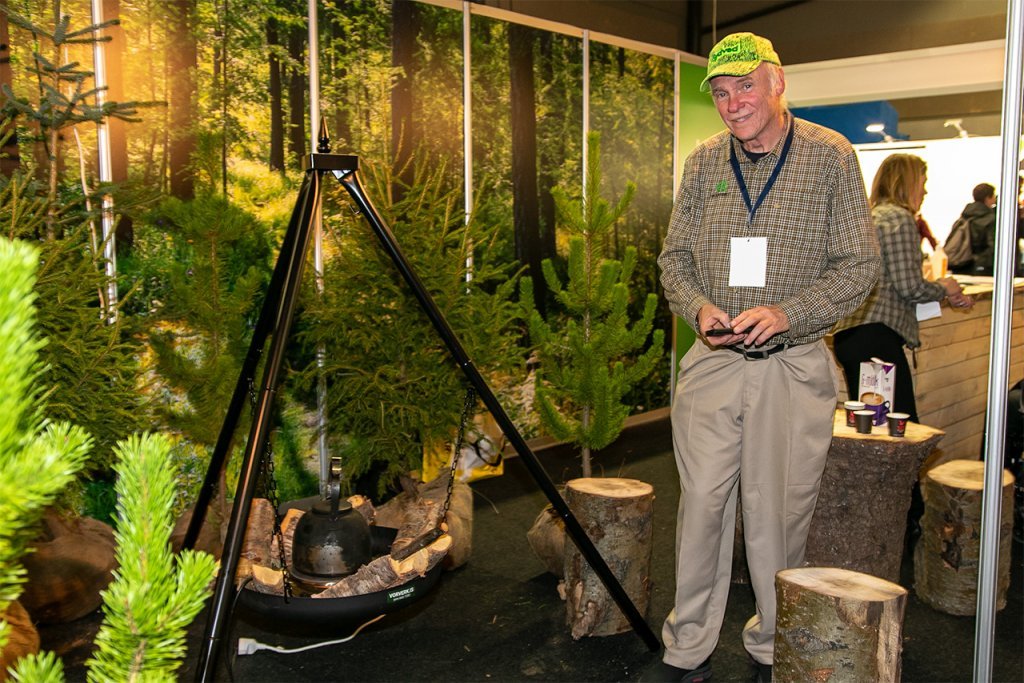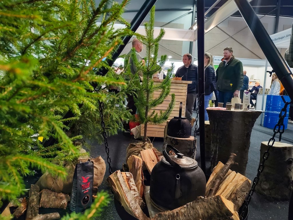 Ketilkaffi er eins konar aðalsmerki skógræktarfólks á ýmiss konar viðburðum og í bás Skógræktarinnar var komið fyrir bálpönnu innan um ilmandi tré. Þótt kaffið hafi vissulega ekki verið eldað með eldi heldur rafmagnshellu sem falin var ofan í bálpönnunni reyndist það sérlega gott og var punkturinn yfir i-ið í skógarstemmningunni sem skapaðist.