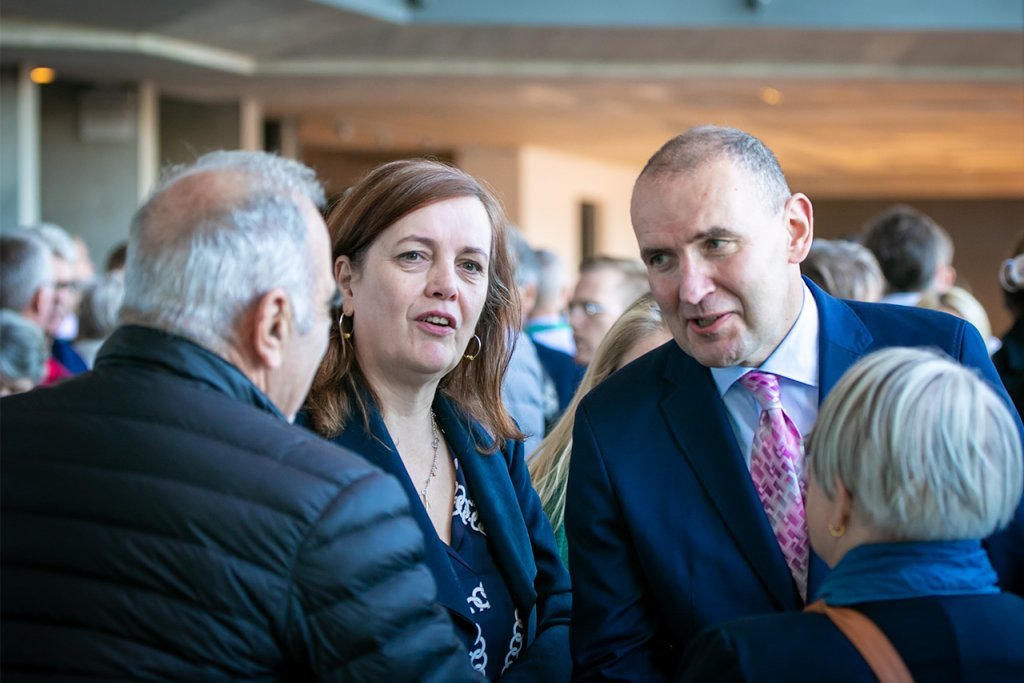 Helena Marta Stefánsdóttir, sérfræðingur og skógræktarráðgjafi, tekur á móti fjölskyldu í bás Skógræktarinnar og börnin fá skógarbingó. Ljósmynd: Pétur Halldórsson